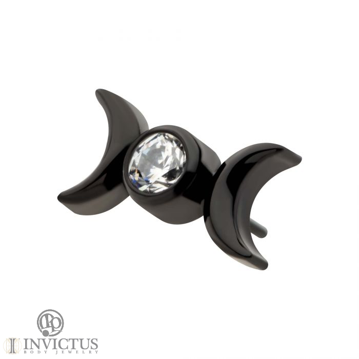 Our Black PVD Titanium Triple Moon piece is the ultimate representation of celestial elegance. With a genuine Swarovski crystal set in the center, this splendid body jewelry is not only fashion forward but also constructed from implant grade material, guaranteeing its durability and safety. Its threadless fitting makes it an absolute comfort piece that you’ll love to wear every day!